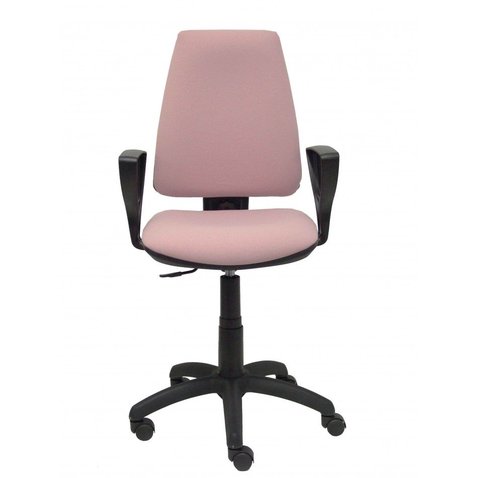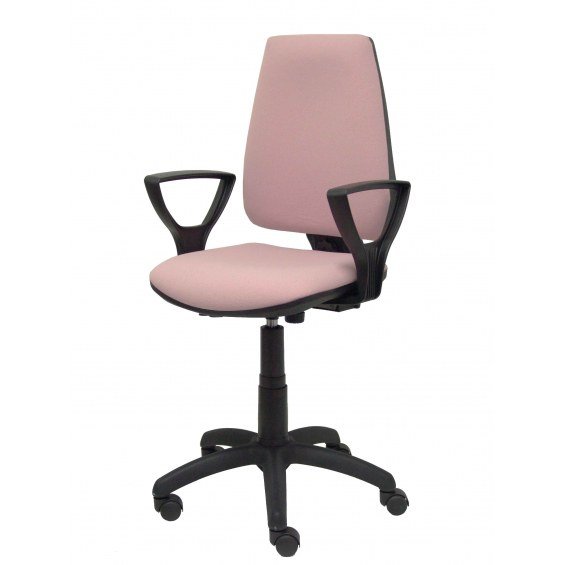 PIQUERAS Y CRESPO Modelo Elche CP - Silla de oficina ergonómica con mecanismo permanente, regulable en altura y ruedas de parqué - Asiento y respaldo tapizados en tejido BALI color rosa pálido (BRAZOS FIJOS INCLUIDOS)