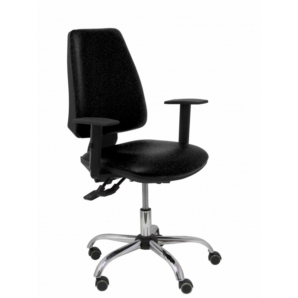 PIQUERAS Y CRESPO Modelo Elche S 24 horas - Silla de oficina ergonómica con mecanismo asincro y regulable en altura - Asiento y respaldo tapizados en tejido SIMILPIEL color negro - Brazos regulables - Espuma viscoelástica - (USO INTENSIVO 24 HORAS)