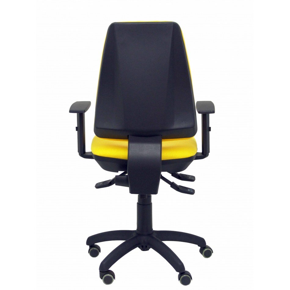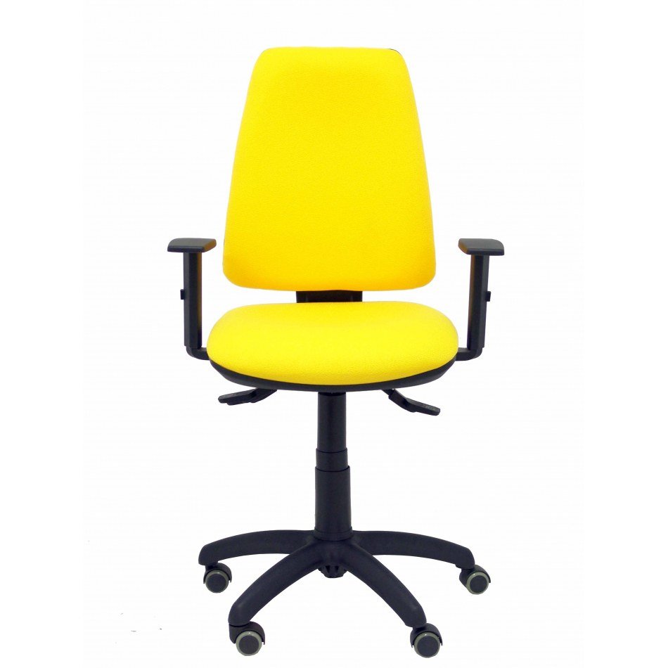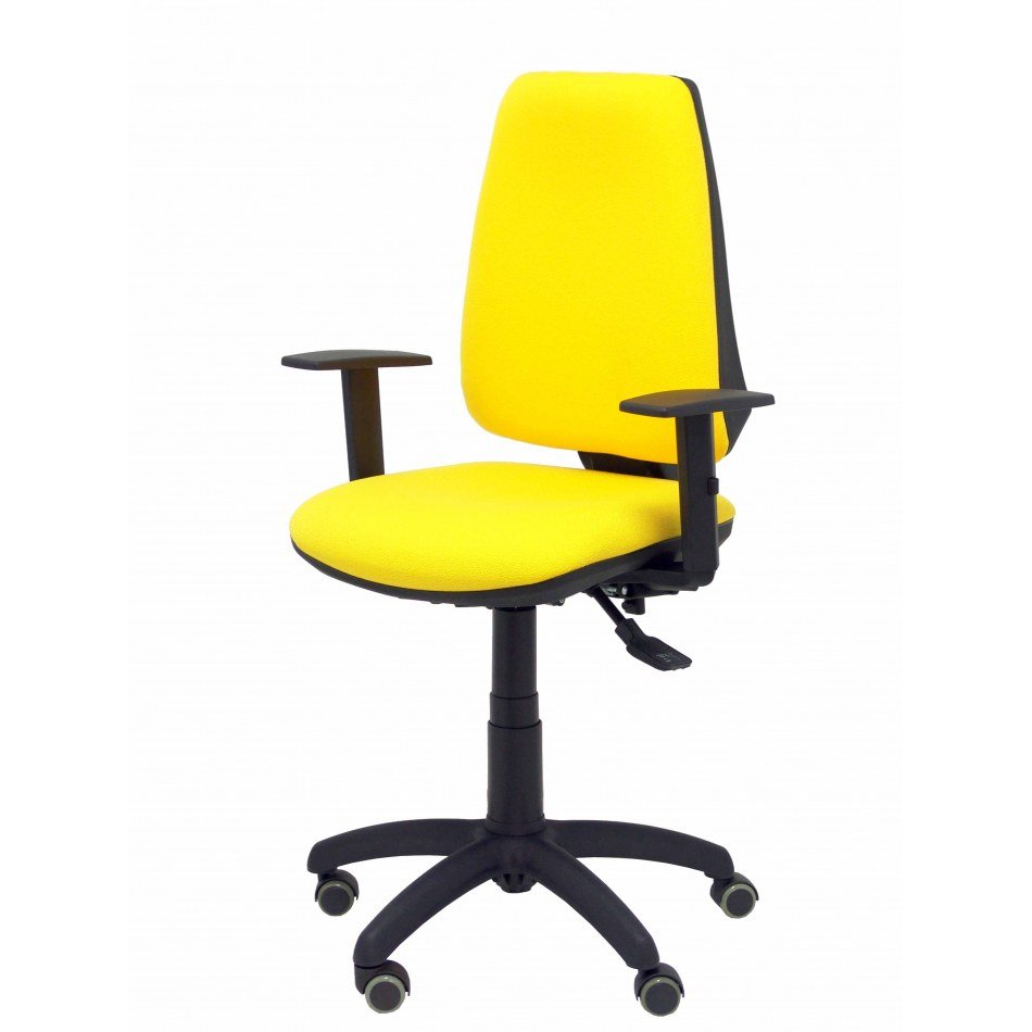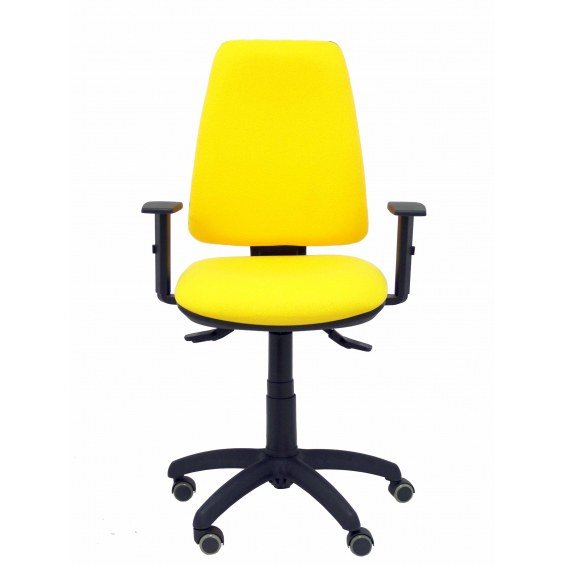 Silla para trabajar amarilla Elche con respaldo regulable en altura, brazos 1D y mecanismo asincro, ideal para 8 horas de uso y peso máximo de 120 Kg - PIQUERAS Y CRESPO