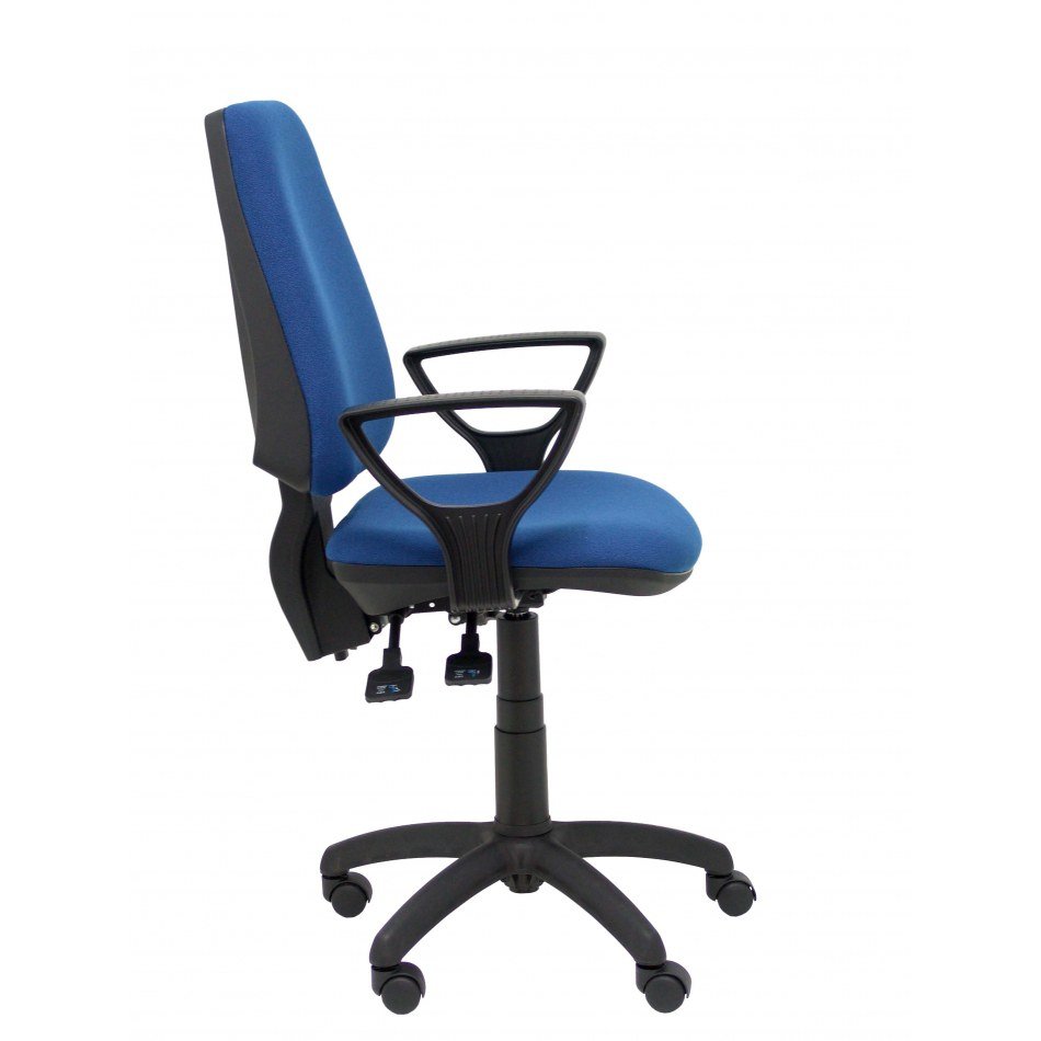 PIQUERAS Y CRESPO Modelo Elche S - Silla de oficina ergonómica con mecanismo asincro, regulable en altura y ruedas de nailon - Asiento y respaldo tapizados en tejido BALI color azul marino (BRAZOS FIJOS INCLUIDOS)