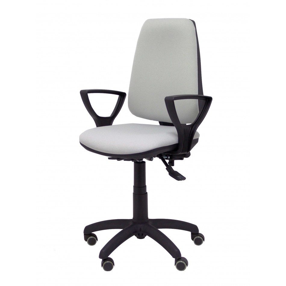 PIQUERAS Y CRESPO Modelo Elche S - Silla de oficina ergonómica con mecanismo sincro, regulable en altura y ruedas de parqué - Asiento y respaldo tapizados en tejido BALI color gris (BRAZOS FIJOS INCLUIDOS)
