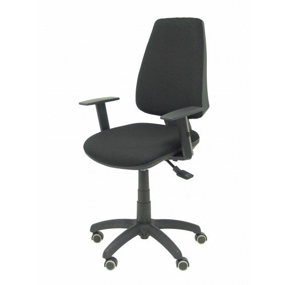 PIQUERAS Y CRESPO Modelo Elche S - Silla de oficina ergonómica con mecanismo asincro, regulable en altura y ruedas de parqué - Asiento y respaldo tapizados en tejido BALI color negro. (BRAZOS REGULABLES EN ALTURA)