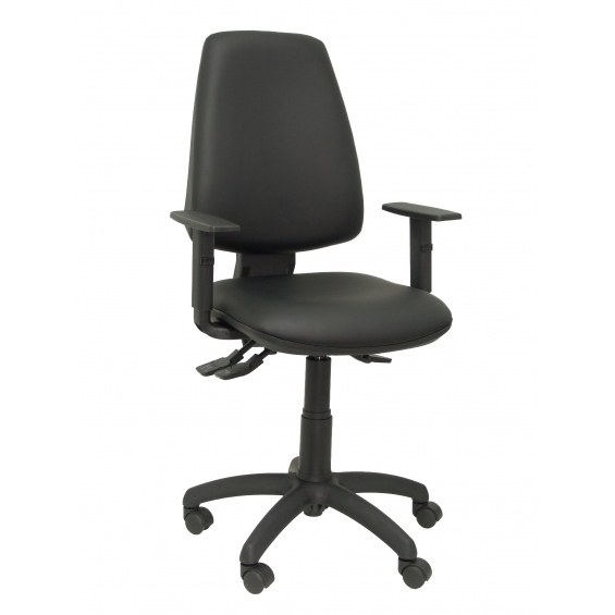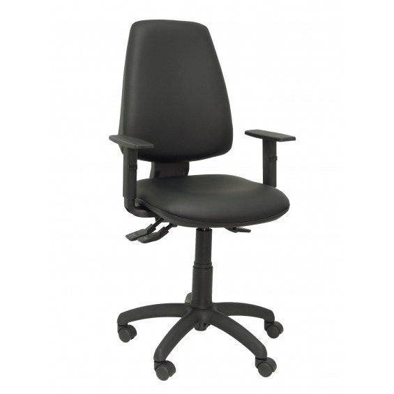 PIQUERAS Y CRESPO Modelo Elche S - Silla de oficina ergonómica con mecanismo sincro y regulable en altura - Asiento y respaldo tapizados en similpiel color negro (BRAZOS REGULABLES INCLUIDOS)