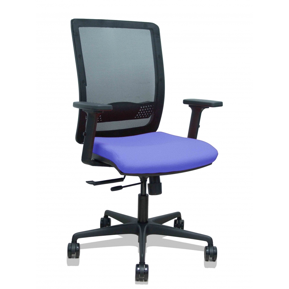 PIQUERAS Y CRESPO Modelo Haches - Silla de oficina ergonómica con mecanismo sincro con traslack, brazos regulables en 2D y ajustable en altura - Respaldo de malla transpirable en color negro con refuerzo lumbar regulable y asiento tapizados en tejido BALI color azul claro. Ruedas de nailon de 65mm.