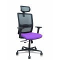 PIQUERAS Y CRESPO Modelo Haches - Silla de oficina ergonómica con mecanismo sincro con traslack, brazos regulables en 2D y ajustable en altura - Respaldo de malla transpirable en color negro con refuerzo lumbar regulable, cabecero regulable de malla y asiento tapizados en tejido BALI color lila. Ruedas de nailon de 65mm.