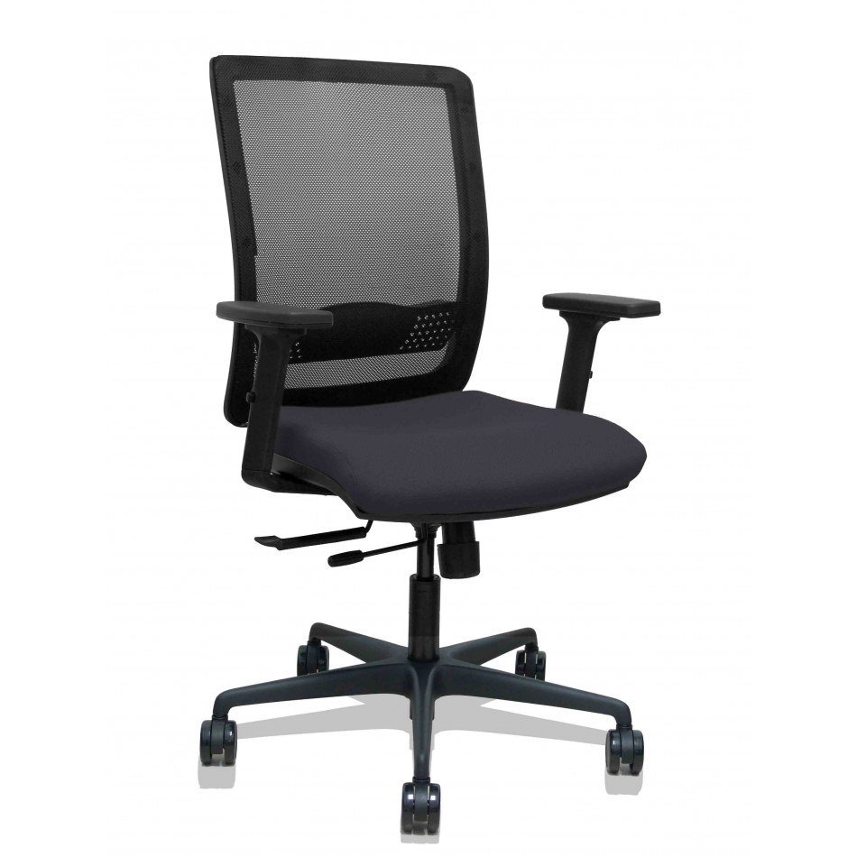 PIQUERAS Y CRESPO Modelo Haches - Silla de oficina ergonómica con mecanismo sincro con traslack, brazos regulables en 2D y ajustable en altura - Respaldo de malla transpirable en color negro con refuerzo lumbar regulable y asiento tapizados en tejido BALI color negro. Ruedas de nailon de 65mm.