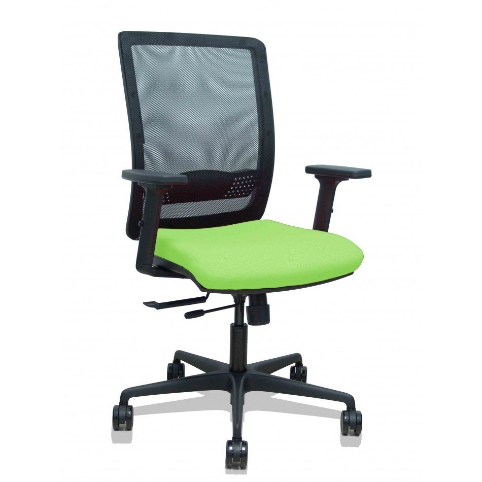 PIQUERAS Y CRESPO Modelo Haches - Silla de oficina ergonómica con mecanismo sincro con traslack, brazos regulables en 2D y ajustable en altura - Respaldo de malla transpirable en color negro con refuerzo lumbar regulable y asiento tapizados en tejido BALI color pistacho. Ruedas de nailon de 65mm.