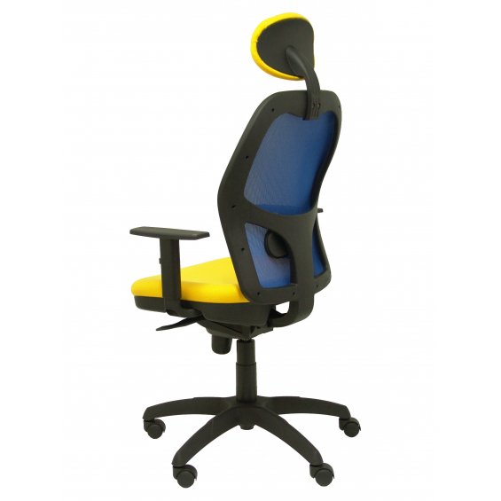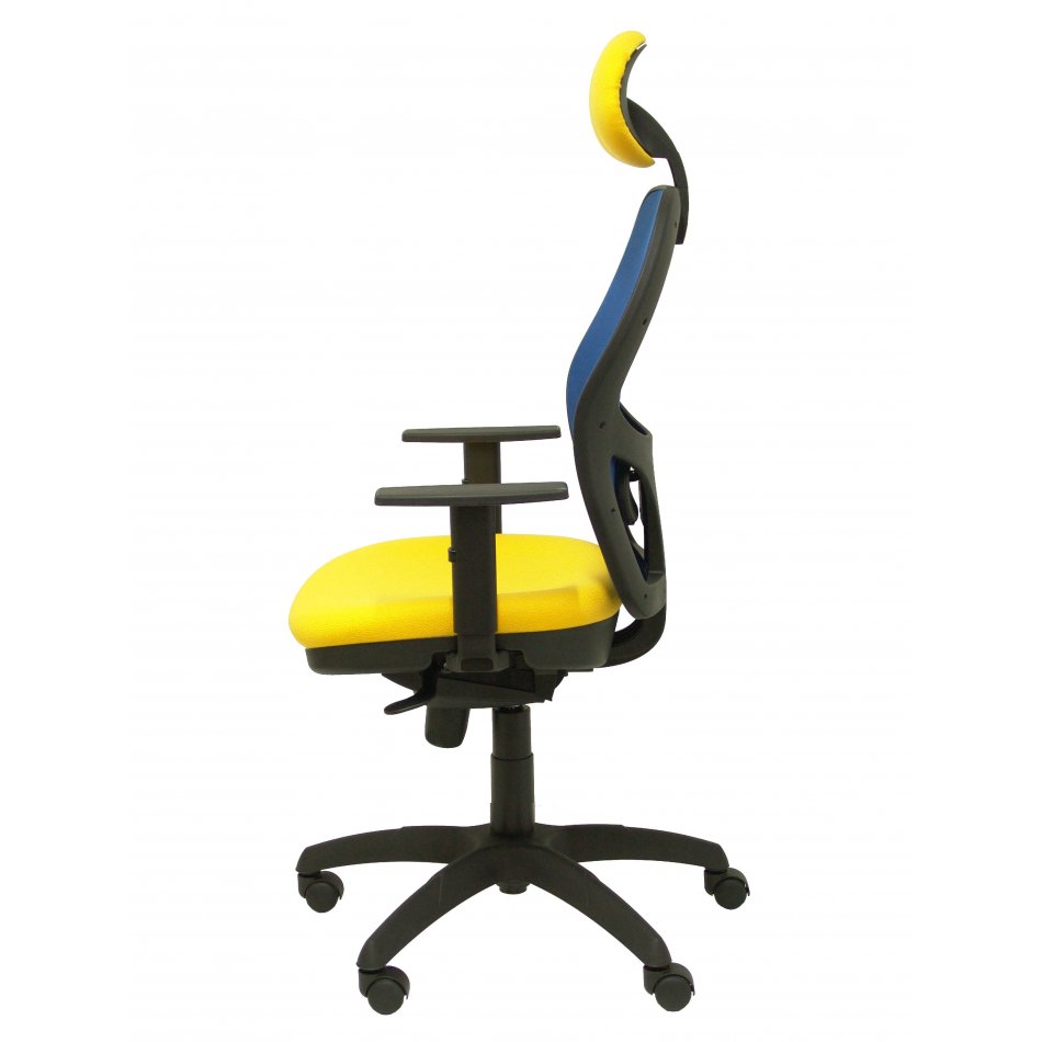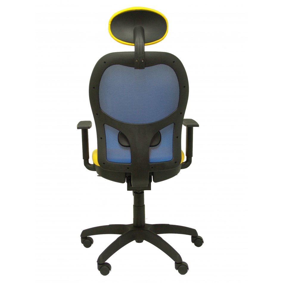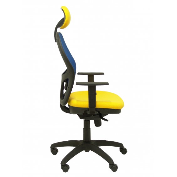 PIQUERAS Y CRESPO Modelo Jorquera - Silla de oficina ergonómica con mecanismo sincro, brazos regulables y ajustable en altura Respaldo de malla transpirable en color azul y asiento tapizados en tejido BALI color amarillo (CON CABECERO)