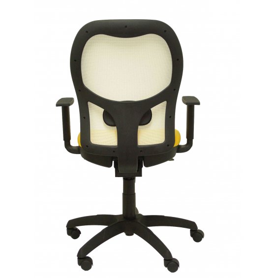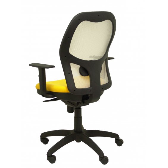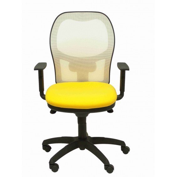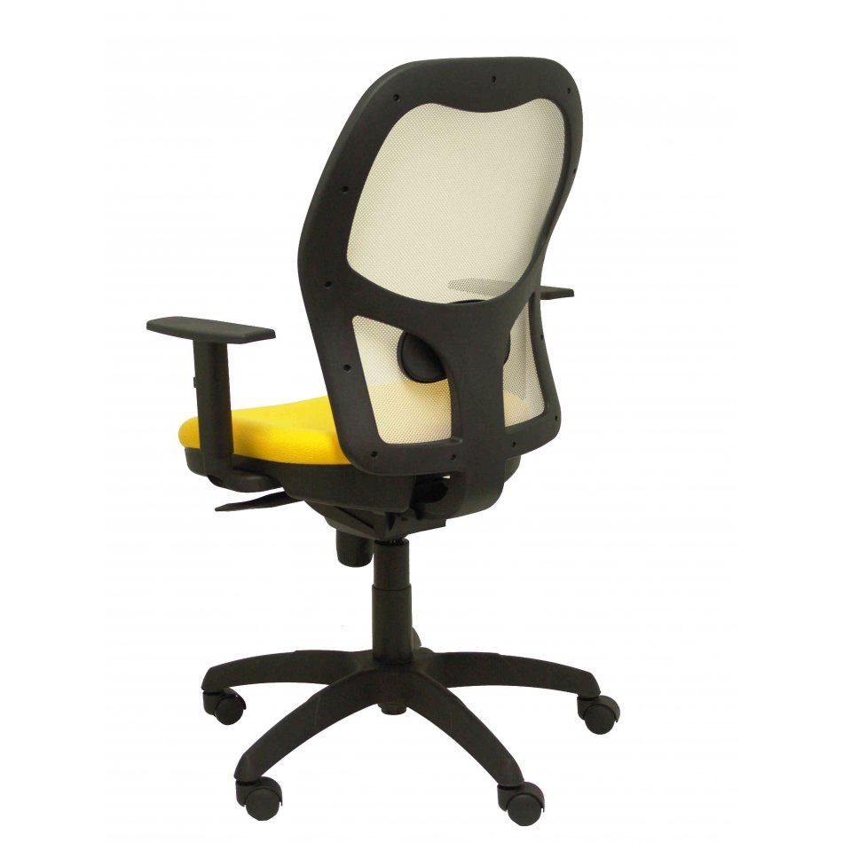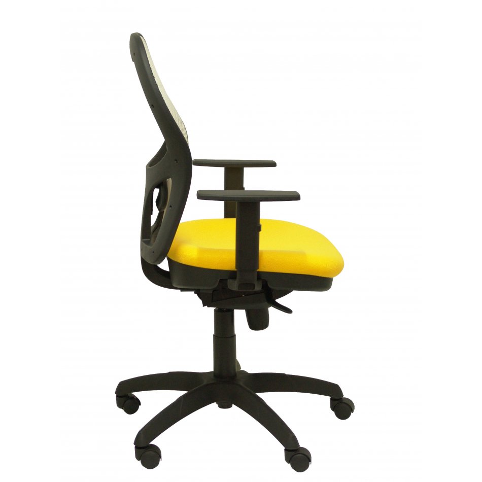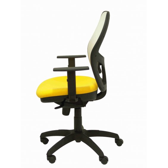 PIQUERAS Y CRESPO Modelo Jorquera - Silla de oficina ergonómica con mecanismo sincro, brazos regulables y ajustable en altura - Respaldo de malla transpirable en color blanco y asiento tapizados en tejido BALI color amarillo
