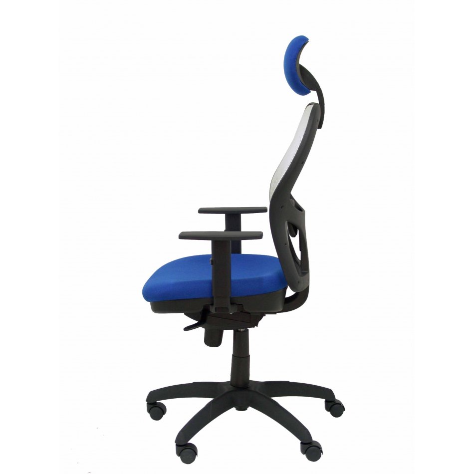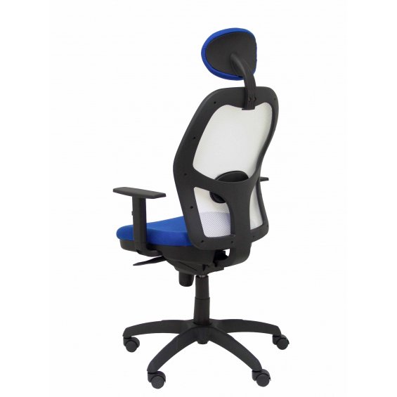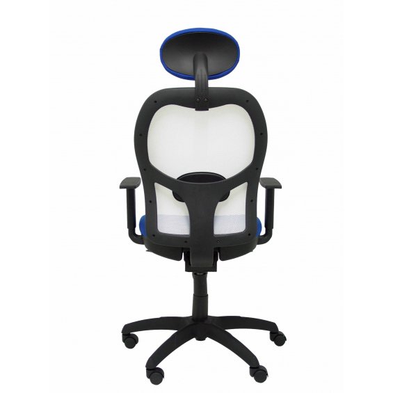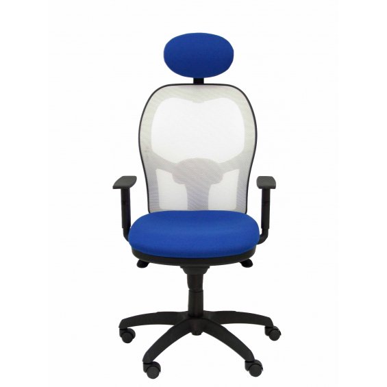 PIQUERAS Y CRESPO Modelo Jorquera - Silla de oficina ergonómica con mecanismo sincro, brazos regulables y ajustable en altura Respaldo de malla transpirable en color blanco y asiento tapizados en tejido BALI color azul (CON CABECERO)