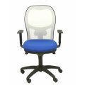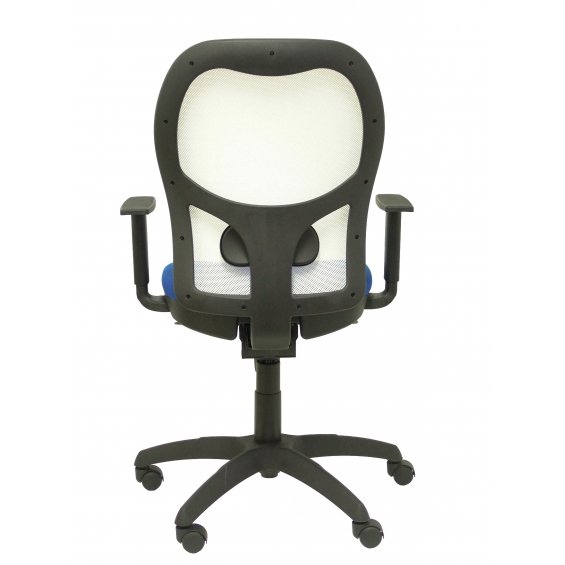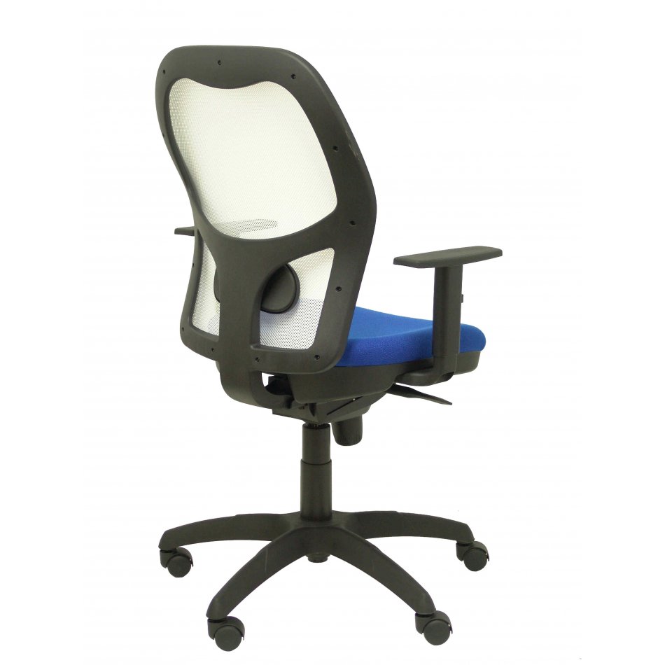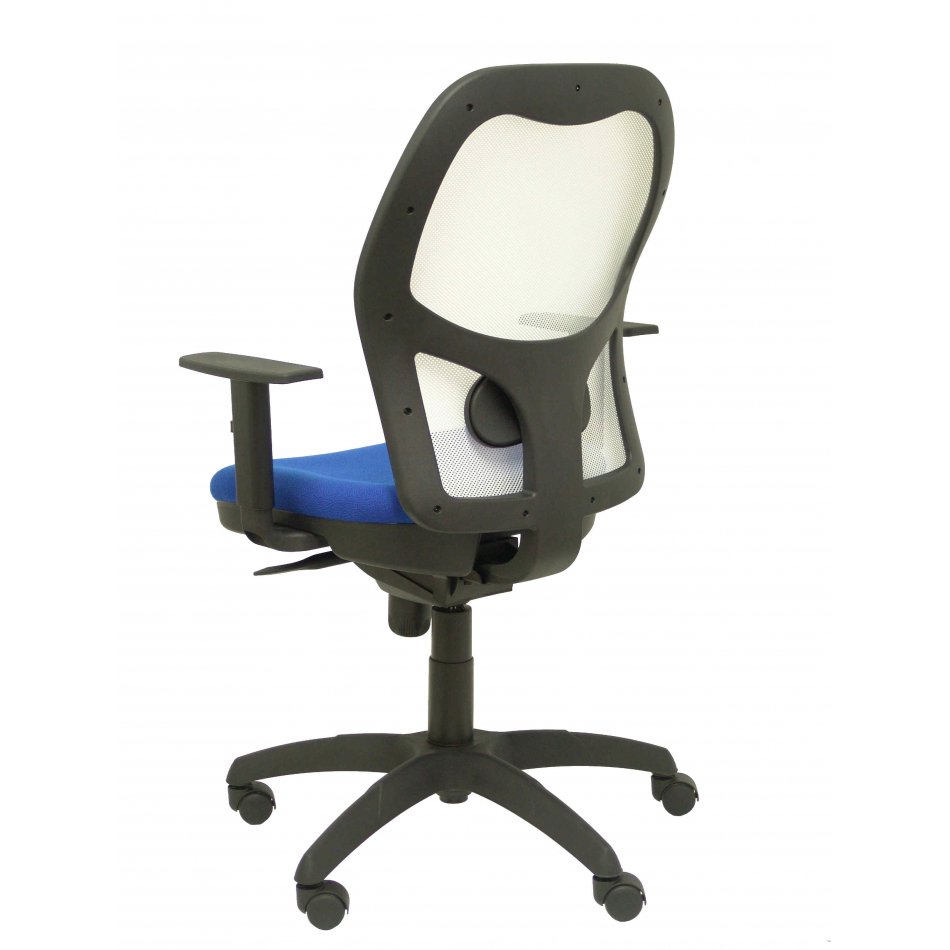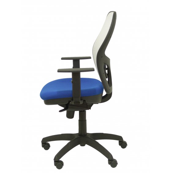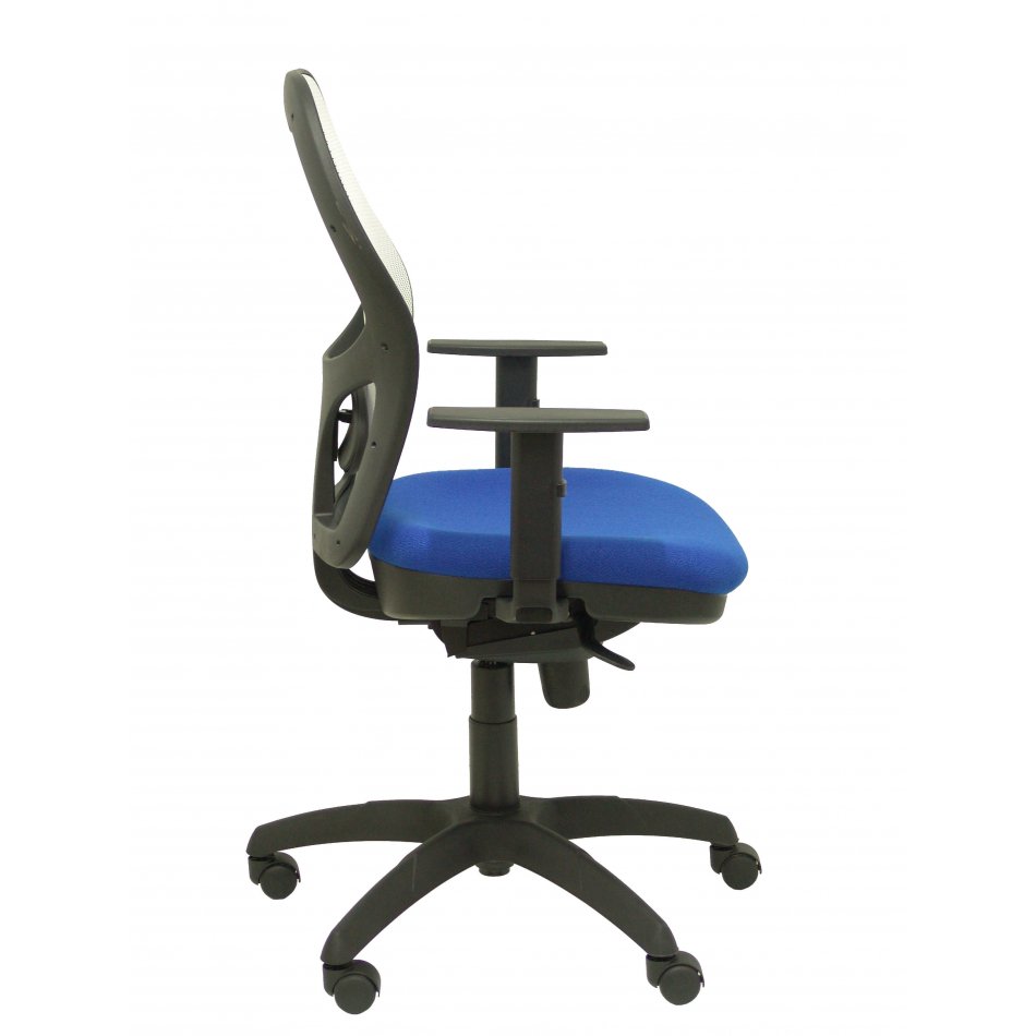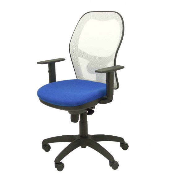 PIQUERAS Y CRESPO Modelo Jorquera - Silla de oficina ergonómica con mecanismo sincro, brazos regulables y ajustable en altura - Respaldo de malla transpirable en color blanco y asiento tapizados en tejido BALI color azul