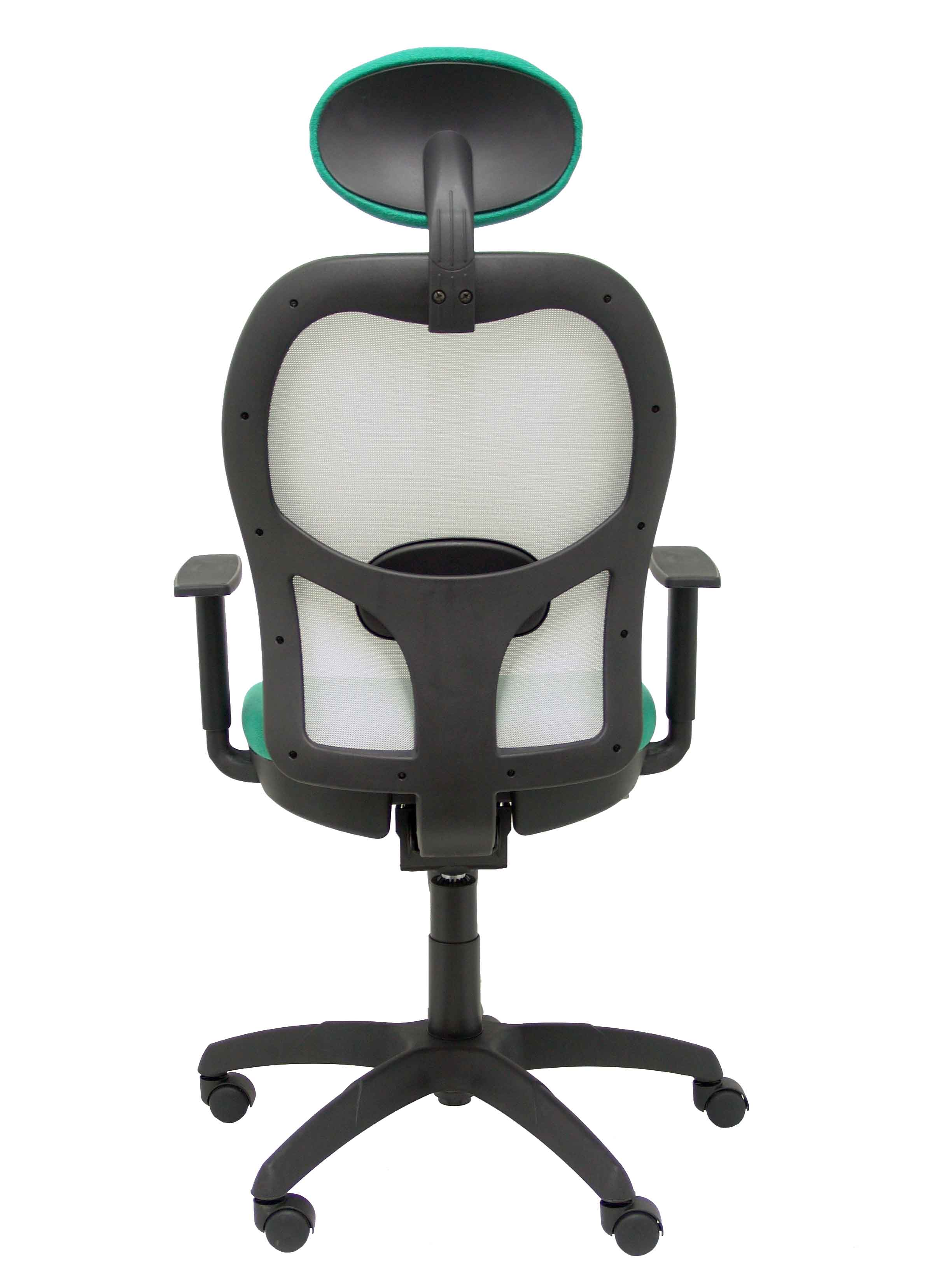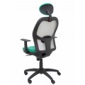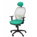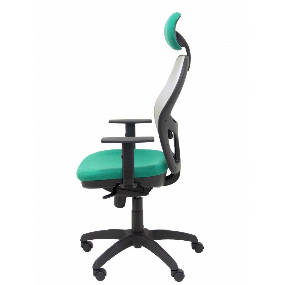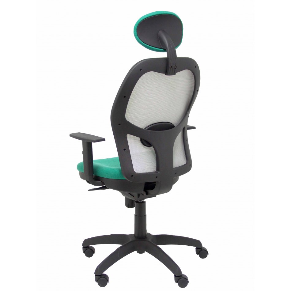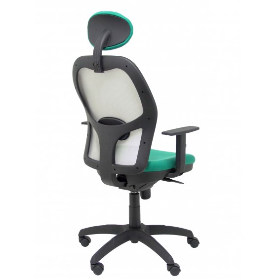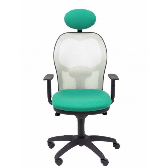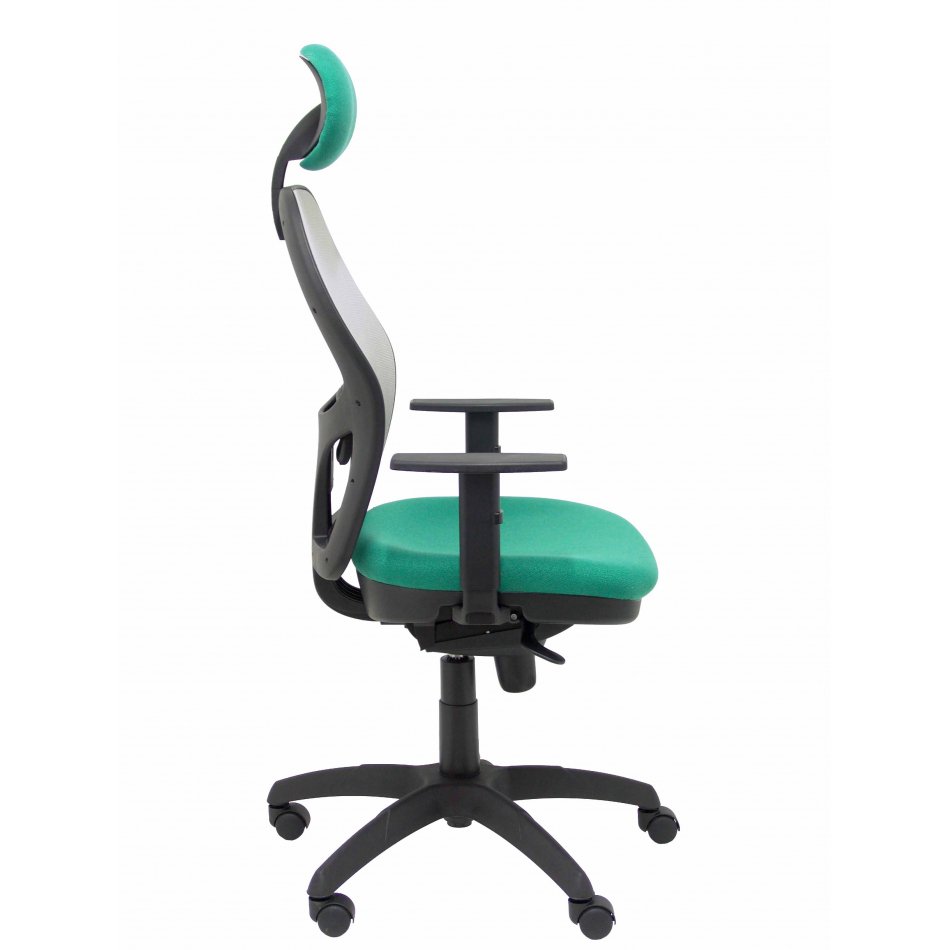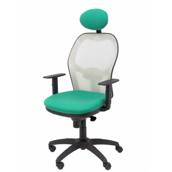 PIQUERAS Y CRESPO Modelo Jorquera - Silla de oficina ergonómica con mecanismo sincro, brazos regulables y ajustable en altura Respaldo de malla transpirable en color gris y asiento tapizados en tejido BALI color verde esmeralda (CON CABECERO)