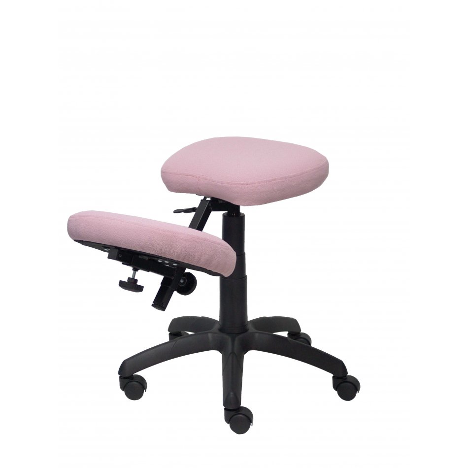 PIQUERAS Y CRESPO Modelo Lietor - Taburete de oficina ergonómico giratorio y regulable en altura - Asiento tapizado en tejido BALI color rosa pálido (RODILLERA REGULABLE)