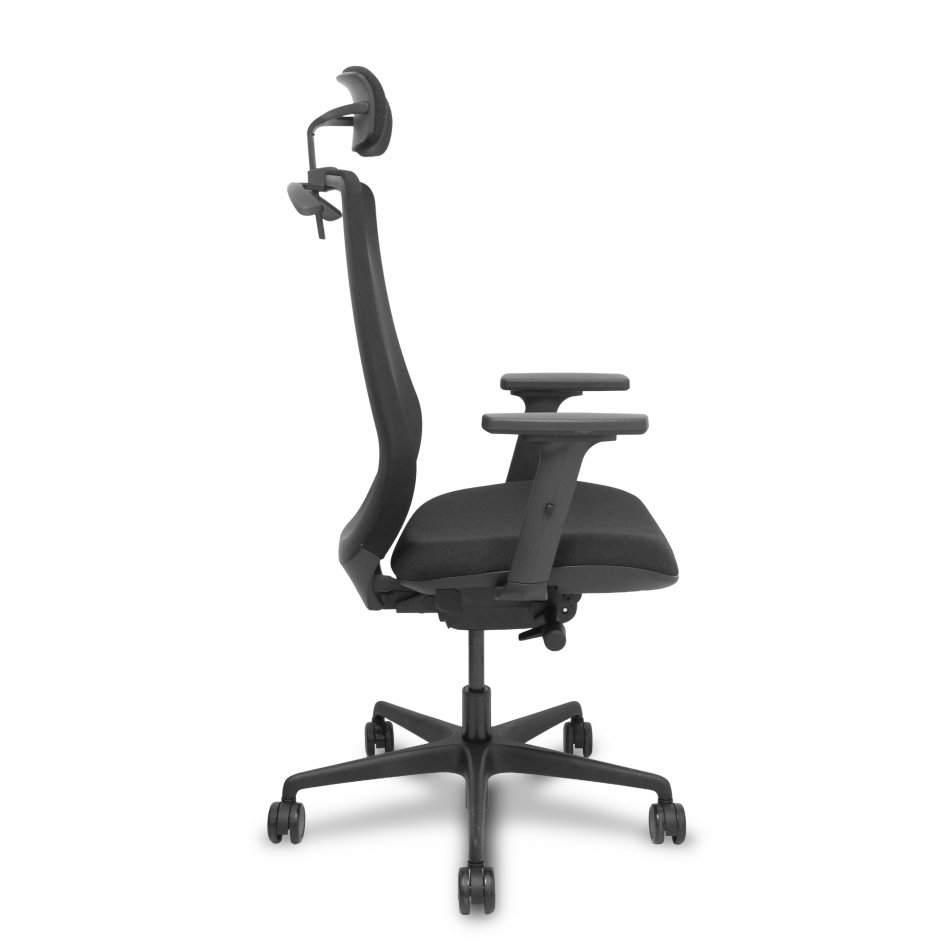 El mecanismo Sincro/Traslack ofrece un movimiento fluido del respaldo, permitiendo que se ajuste automáticamente al peso del usuario, lo que contribuye a una experiencia ergonómica. Además, cuenta con un cabecero regulable que proporciona un soporte óptimo para el cuello, y un apoyo lumbar ajustable que ayuda a mantener la curvatura natural de la espalda.