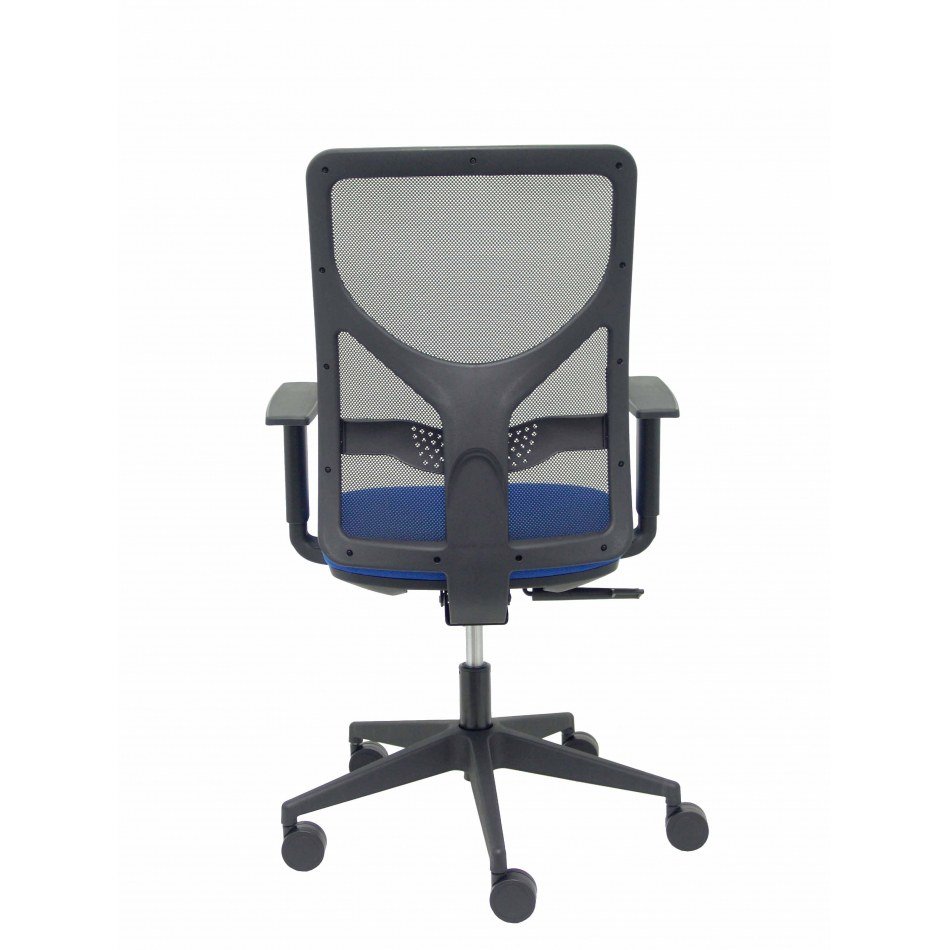PIQUERAS Y CRESPO Modelo Motilla - Silla de oficina ergonómica con mecanismo sincro, brazos regulables y ajustable en altura - Respaldo de malla transpirable en color negro y asiento tapizados en tejido BALI color azul.