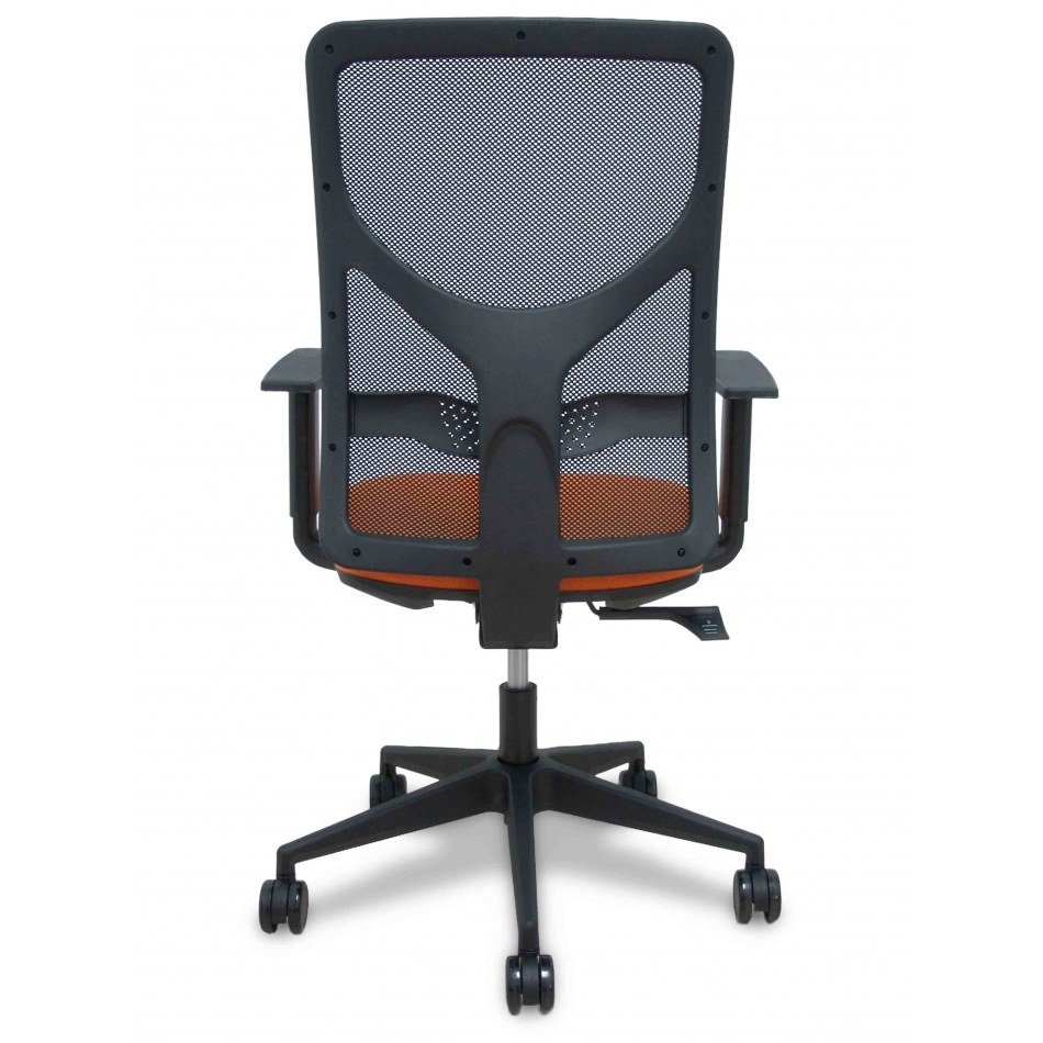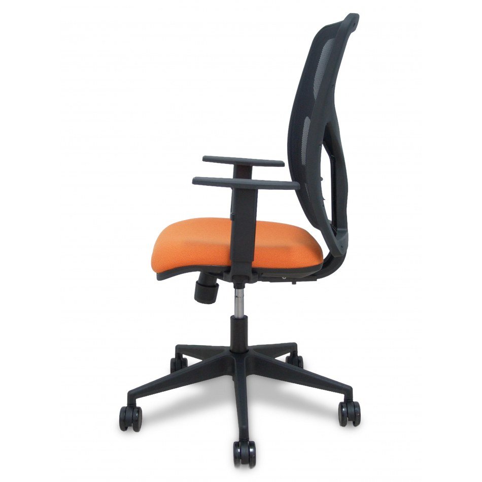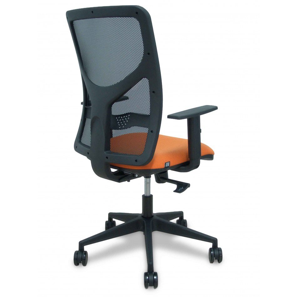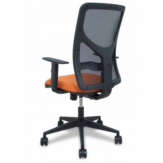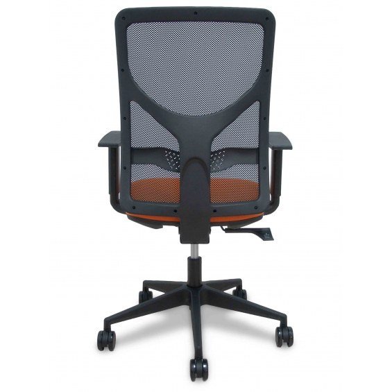 PIQUERAS Y CRESPO Modelo Motilla - Silla de oficina ergonómica con mecanismo sincro, brazos regulables y ajustable en altura - Respaldo de malla transpirable en color negro y asiento tapizados en tejido BALI color naranja. Ruedas de nailon de 65mm.