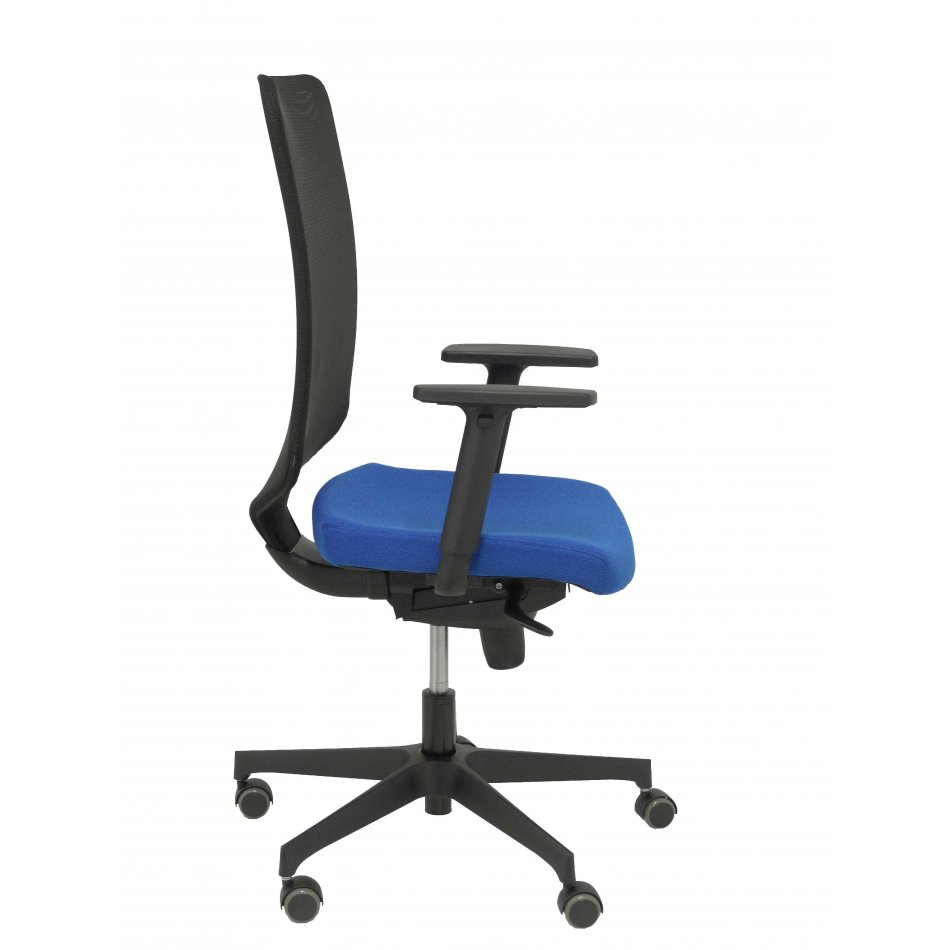 PIQUERAS Y CRESPO Modelo Ossa Negra - Silla de Oficina ergonómica con mecanismo sincro y regulable en altura - Respaldo de malla en color negro y asiento tapizado en tejido BALI color azul
