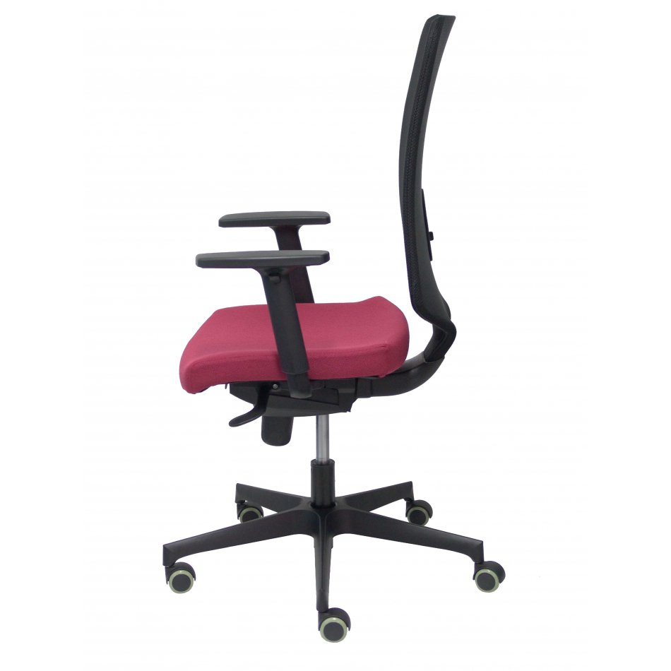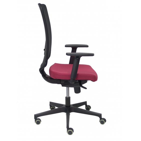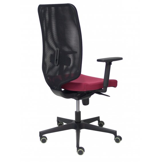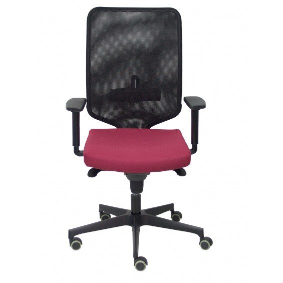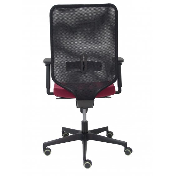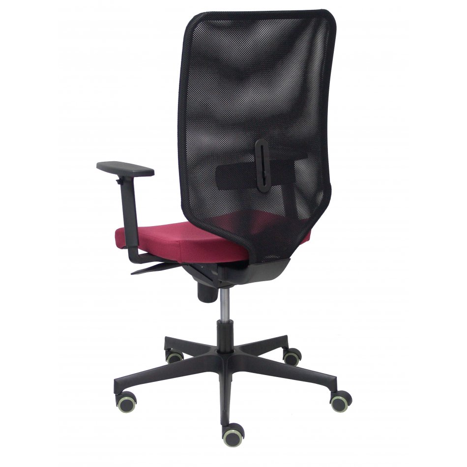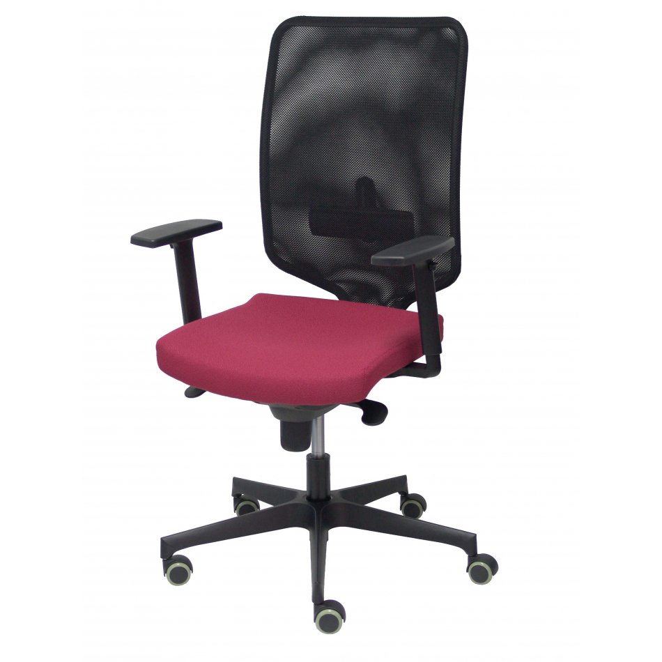 PIQUERAS Y CRESPO Modelo Ossa Negra - Silla de Oficina ergonómica con mecanismo sincro y regulable en altura - Respaldo de malla en color negro y asiento tapizado en tejido BALI color granate
