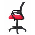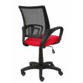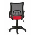 Respaldo de malla color negro y asiento tapizado en tejido bali color rojo.