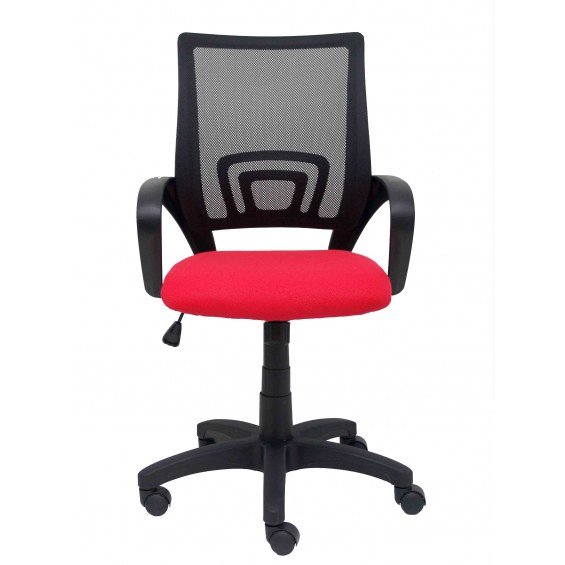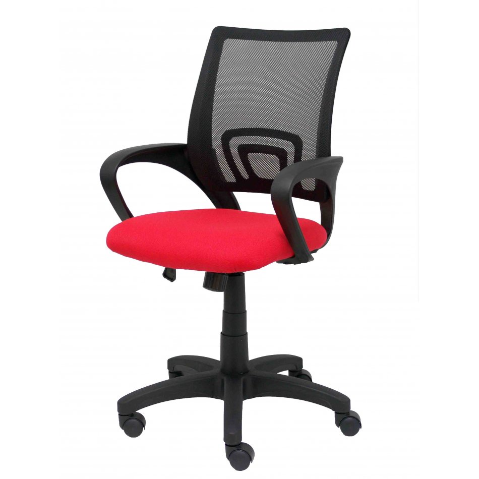 PIQUERAS Y CRESPO Modelo Vianos - Silla de oficina ergonómica con mecanismo basculante y regulable en altura - Respaldo de malla en color negro y asiento tapizado en tejido bali color rojo