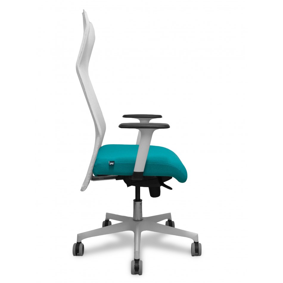 Sillón Albacete malla blanco bali turquesa brazos blancos base blanca ruedas parqué 65mm