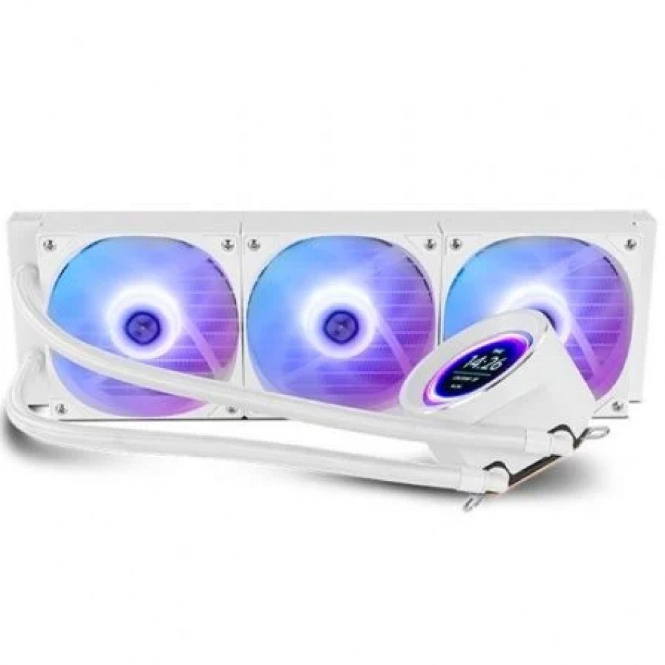 Hummer X-360 LCD es un kit de refrigeración líquida all in one fácil de instalar que ofrece un alto rendimiento con una baja sonoridad. Gracias a su radiador triple (397 x 120 x 27 mm) y sus ventiladores con función PWM que mantienen de manera eficaz la temperatura del ordenador. Además, incluye una pantalla LCD personalizable , que podrás configurar según los datos que necesites saber de tu configuración.