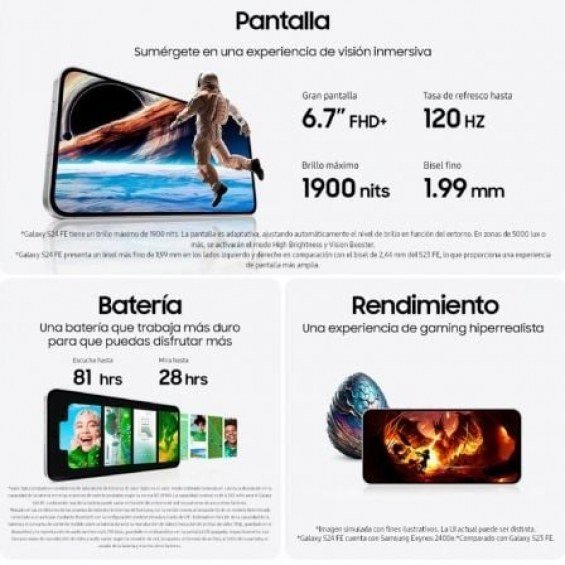 Descubra el nuevo Galaxy S24 FE con su rendimiento AP mejorado para realizar múltiples tareas aún más rápido. Y con el innovador Samsung Exynos 2400e, puedes esperar una experiencia de juego increíblemente inmersiva y realista.