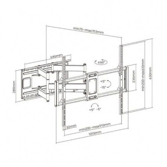 • Distancia de la pared: ajustable entre 75 y 703mm (depende de la instalación y del espacio disponible)