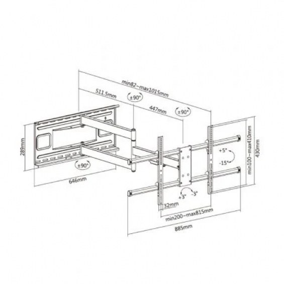 • Distancia de la pared: ajustable entre 82 y 1015mm (depende de la instalación y del espacio disponible)