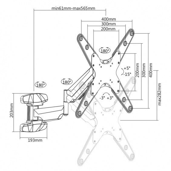 Tipo de Soporte:De Pared;VESA Maximo Ajustable:400x400;