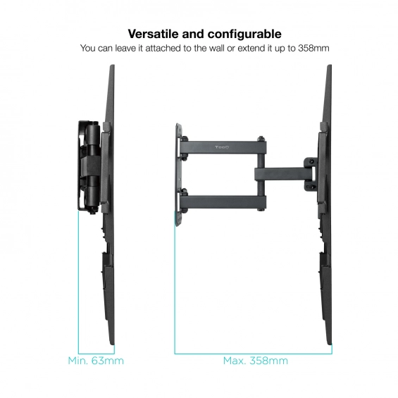 Mejore su experiencia audiovisual y ahorre espacio en su hogar al comprar Soporte de Pared Giratorio/ Inclinable/ Nivelable TooQ LP7863TN-B para TV de 37-70/ hasta 35kg .