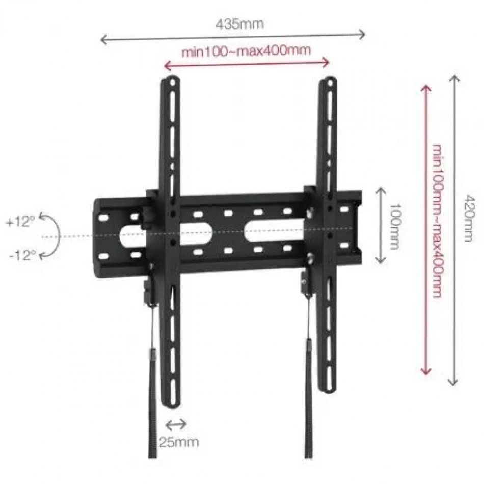 El TILT-044BA es un soporte de pared inclinable para televisores de entre 32'' y 70'' (81,3 a 177,8 cm), diseñado para garantizar estabilidad y facilidad de uso. Su estructura compacta y resistente permite inclinar verticalmente la pantalla hasta ±12°, optimizando el ángulo de visión y mejorando la experiencia de usuario. Con un acabado en color negro y una distancia de 5,3 cm a la pared, se integra discretamente en cualquier ambiente.