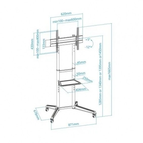 • Rango de ajuste de altura del soporte: 1285-1450 mm