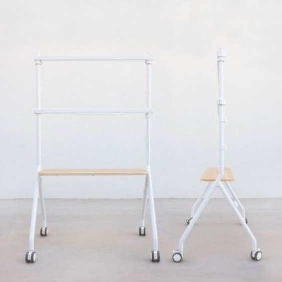 iLOVE Soporte de Suelo con Ruedas para Pantalla 49'-80', Blanco y Haya+