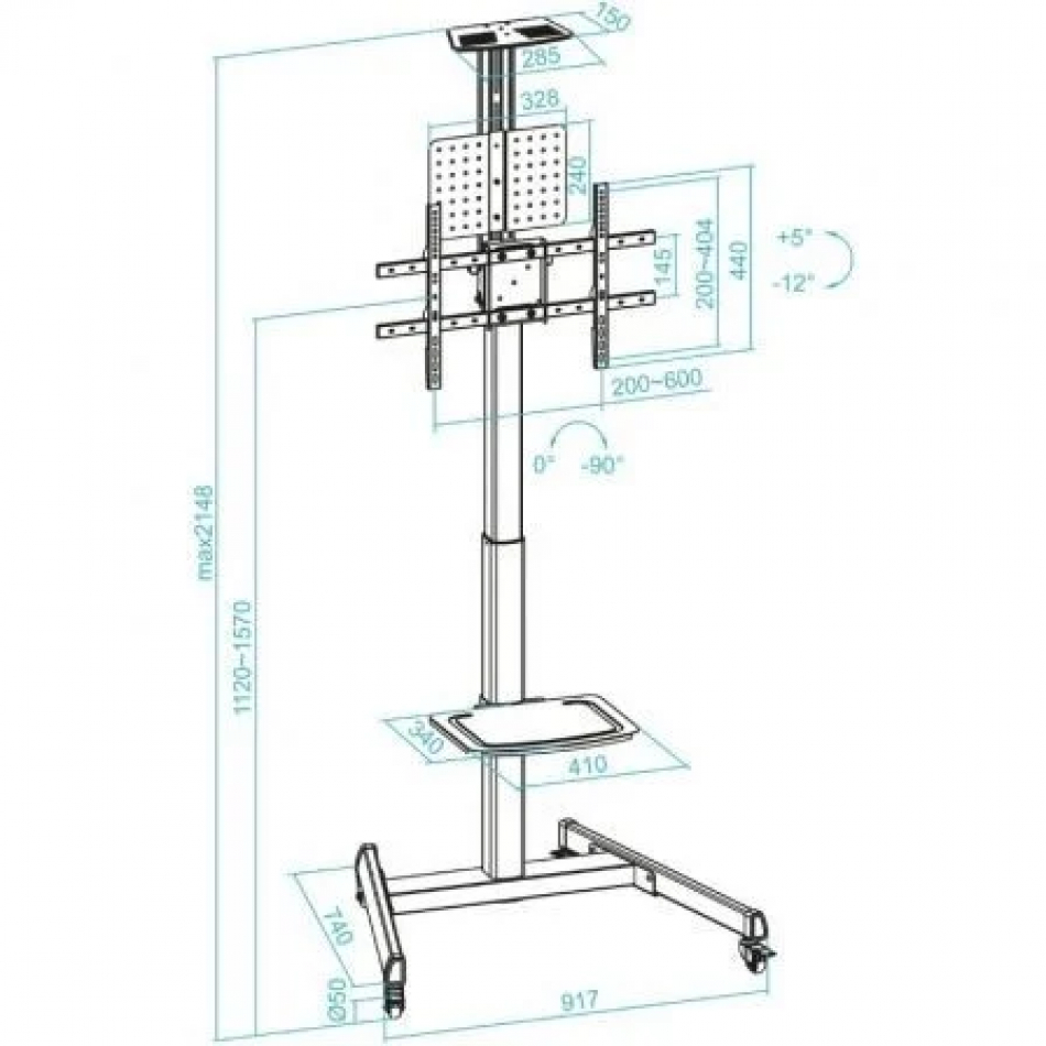 “COMETA” Soporte de Suelo con Ruedas con Regulación de Altura para Pantallas 37'- 70', Rotación