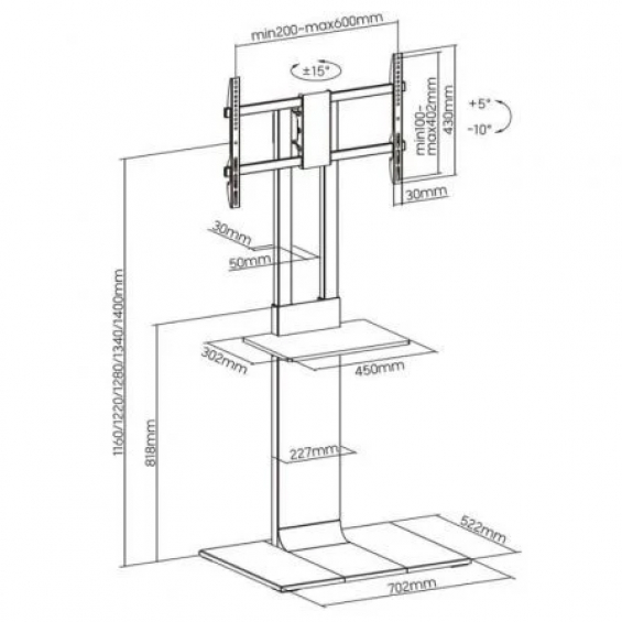 Compatible con pantallas de 37” a 86” y múltiples configuraciones VESA hasta 600x400 mm. Incluye ajustes de altura y ángulos de inclinación y giro para adaptar la visualización a cada entorno.