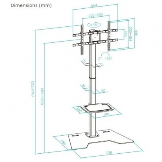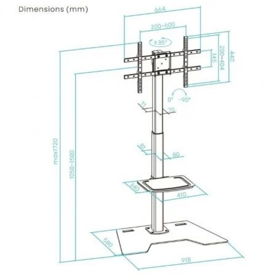 • Rango de ajuste de altura del soporte: 1050-1500 mm