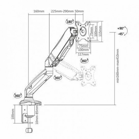 AISENS® – Soporte de mesa contrapeso giratorio e inclinable para monitor (3 pivotes, 1 brazo) de 13”-32”. Fabricado con aluminio de alta resistencia y pintado con pintura electrostática para un acabado perfecto
