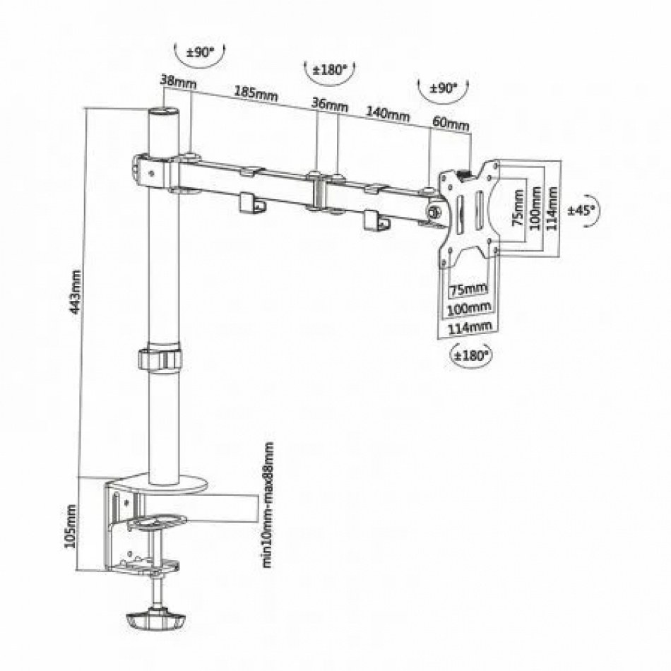 AISENS® – Soporte de mesa eco giratorio e inclinable para monitor/TV (3 pivotes, 1 brazo) de 13”-32”. Fabricado con acero de alta resistencia y pintado con pintura electrostática para un acabado perfecto.