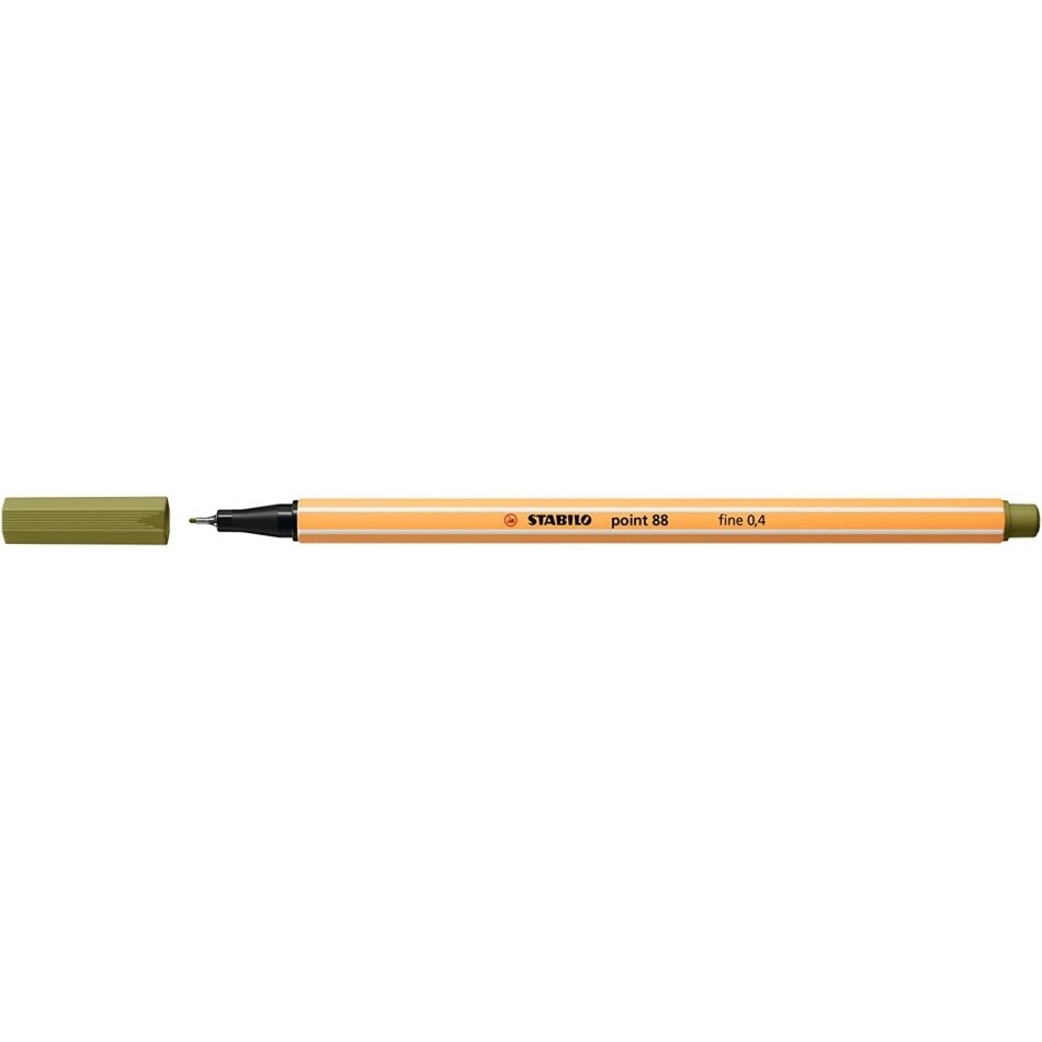 Stabilo Point 88 Rotulador de Punta Fina de Fibra - Trazo de 0.4 mm - Tinta con Base de Agua - Color Verde Barro