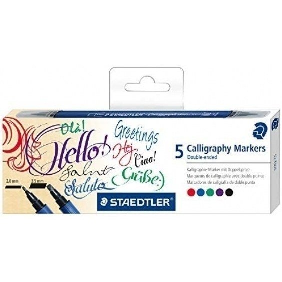 Staedtler 3002 Pack de 5 Rotuladores de Doble Punta para Caligrafia - Tinta Base de Agua - Colores Surtidos