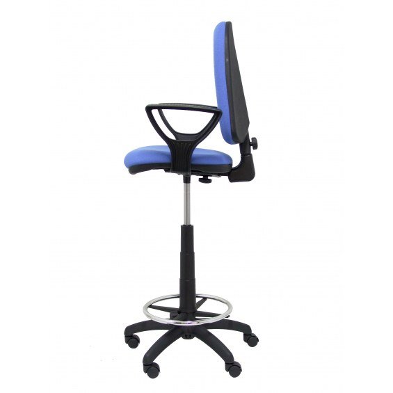 PIQUERAS Y CRESPO Modelo Ayna Taburete - Taburete ergonómico con mecanismo de contacto permanente, regulable en altura y aro reposapiés - Asiento y respaldo tapizados en tejido BALI color azul claro (BRAZOS FIJOS INCLUIDOS)