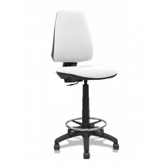 PIQUERAS Y CRESPO Modelo Elche Taburete CP - Taburete ergonómico con mecanismo de contacto permanente y regulable en altura - Asiento y respaldo tapizados en tejido BALI color blanco.