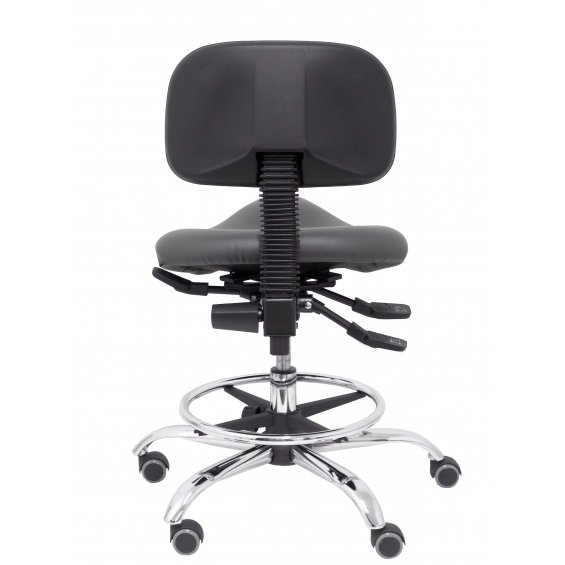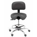 Taburete especial para uso en clínicas de todo tipo. Su característica principal, además de su forma anatómica, es que es de fácil limpieza. Además, incorpora aro reposapiés cromado para un mayor apoyo y descanso de los pies.