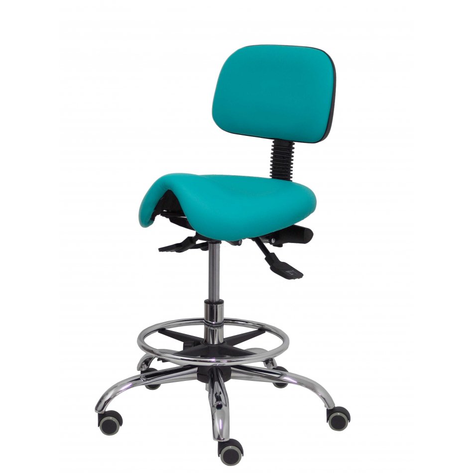 PIQUERAS Y CRESPO Modelo Zarza. Taburete especialmente diseñado para uso clínico. Giratorio y ergonómico con asiento anatómico y regulable en altura (aro reposapiés cromado INCLUIDO) Asiento y respaldo tapizados en similpiel color verde (FÁCIL DE LIMPIAR).