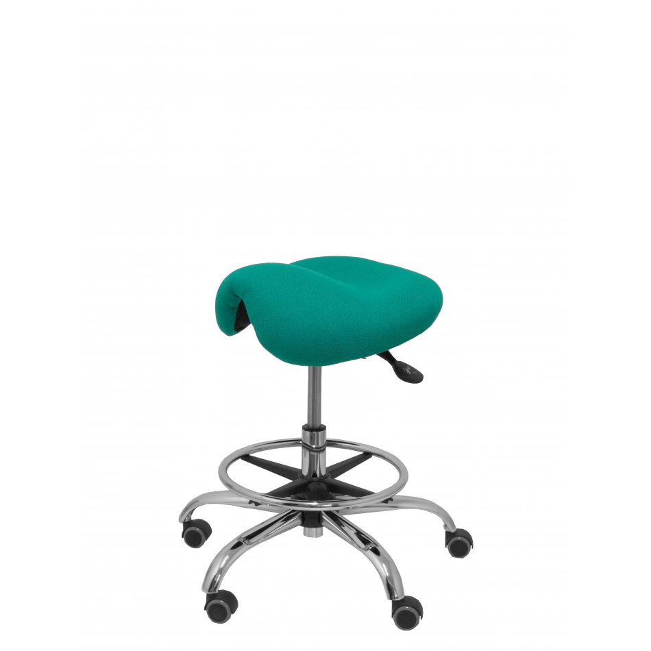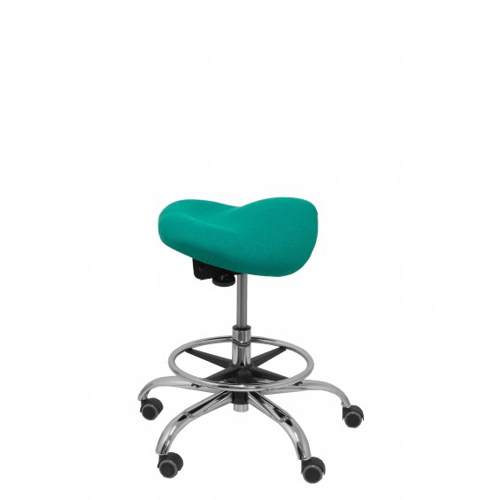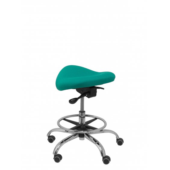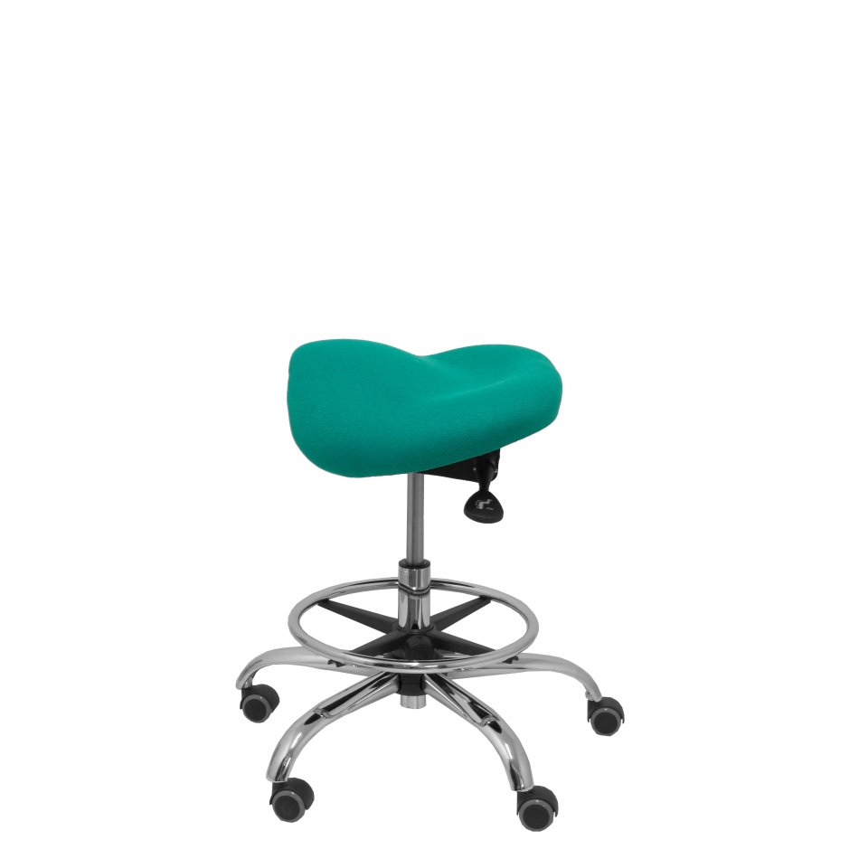 PIQUERAS Y CRESPO Modelo Alatoz. Taburete clínico giratorio y ergonómico con asiento anatómico y regulable en altura (aro reposapiés cromado INCLUIDO). Asiento tapizado en tejido BALI color turquesa.