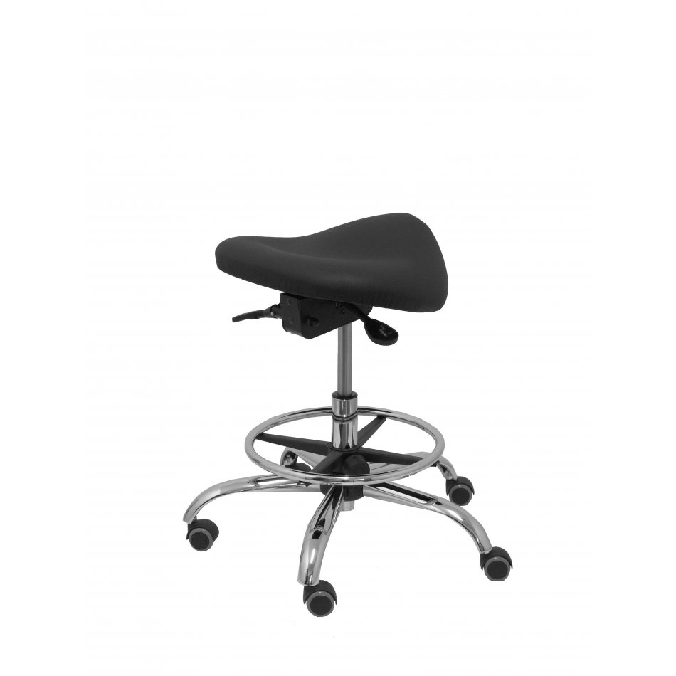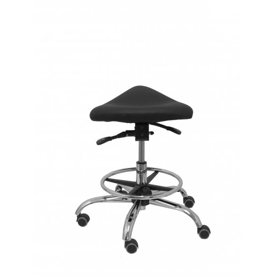PIQUERAS Y CRESPO Modelo Alatoz. Taburete clínico giratorio y ergonómico con asiento anatómico y regulable en altura(aro reposapiés cromado INCLUIDO). Asiento tapizado en similpiel color negro (FÁCIL DE LIMPIAR)