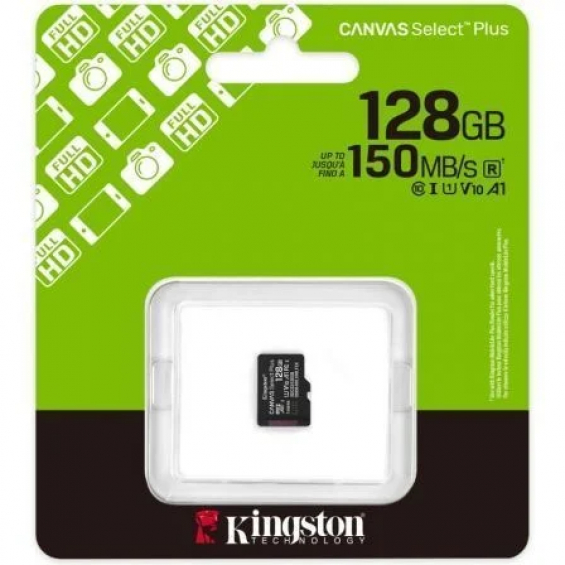 Tarjeta de Memoria Kingston CANVAS Select Plus 128GB microSD XC – Clase 10 150MBs A1