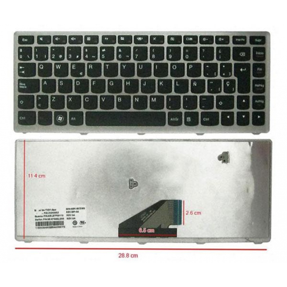 Teclado compatible para portátil LENOVO IdeaPad u310 / Negro / Marco Plata / 25204982