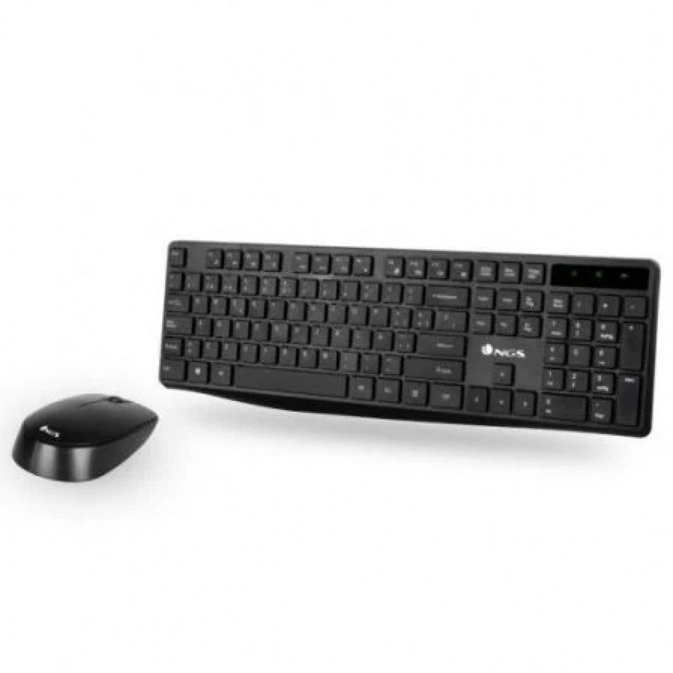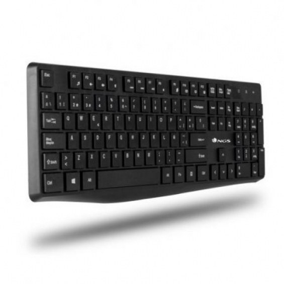 NGS Allure Kit es un conjunto de teclado y ratón inalámbricos de 2,4 GHz. con teclas multimedia y diseño elegante slim que facilitarán a los usuarios sus tareas informáticas cotidianas. Su ratón óptico de 1200 dpi está dotado de una gran precisión en sus movimientos. Incluye rueda antideslizante para proporcionar un mayor agarre con scroll y 2 botones. Incorpora un nano receptor que puede transportarse en el propio ratón o quedar conectado permanentemente al portátil sin riesgo de caída o pérdida. El ratón compacto es apto tanto para usuarios diestros como zurdos. Su teclado presenta un diseño de tamaño completo con teclado numérico. Cuenta con 12 teclas FN + multimedia que hacen más fácil y rápido el acceso a las distintas aplicaciones del ordenador y sus habituales funciones. Así como indicadores LED para Mayúsculas, Bloqueo Numérico y nivel de batería baja. La pulsación de las teclas de perfil bajo es muy suave, cómoda y el ruido que emiten al ser pulsadas es prácticamente imperceptible. Además, incorpora un diseño resistente a los derrames, que ofrece un funcionamiento de mayor duración, aproximadamente de 10 millones de pulsaciones. Equipado con patas que elevan ligeramente el teclado para mejorar la postura y almohadillas de goma en sus topes para garantizar una posición estable del teclado y evitar su deslizamiento. Por último, NGS Allure Kit tiene incorporado la función “Plug & Play” con lo que la conexión a cualquier equipo se realizará de forma inmediata sin necesidad de software a través de su conexión sin cables USB de 2.4GHz con cobertura inalámbrica de hasta 10 m.